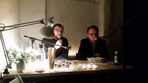 15320228_10210955527471648_122562449_n Mario Osterland und Peter Neumann lesen Texte der Nachbarschafts-Autoren von 2016.